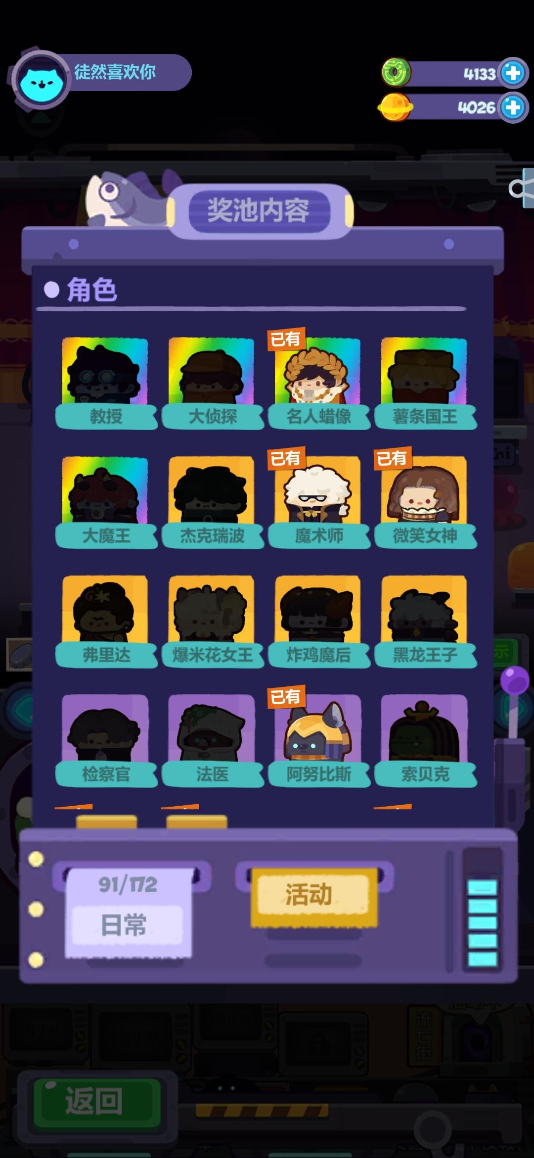 建议探索和打工选人物时多几个自定义分类,可以自己把一类的放在一起,比如把探索加金币的放在一起,容易找