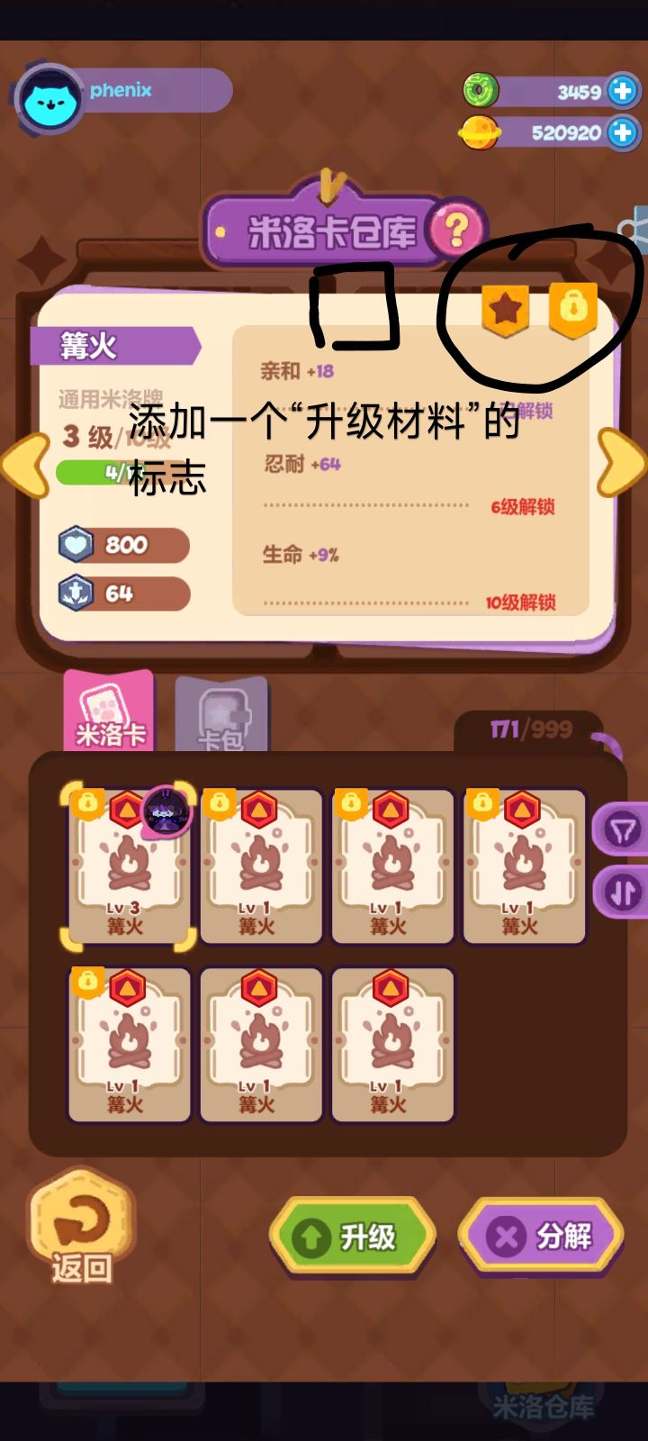 关于米洛卡的建议。在卡库的选项中,除了收藏和锁定外,加一个鉴定为材料卡的标记。每次开卡包要小心地点新卡看。合成升级的时候就放心,快速一些,