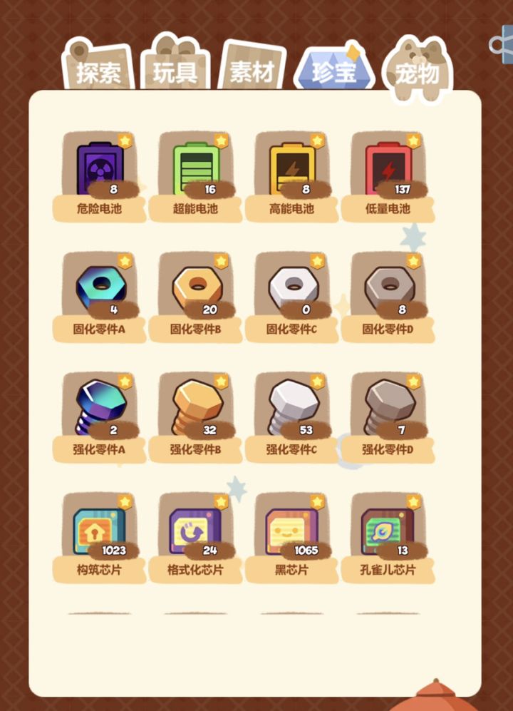 如题,低量电池大量溢出……高能超能死活不够还有超小日记页和小日记页……再就是增加了每周扫除之后,完成任务所需素材会跟随进度/时间增加的机制就不合理了,一周总共就600多个小时,然后你所需素材一直在增加,也就是越后期完成一项任务需要时间越长,想要完成乐于助人3就越来越困难,玩起来太焦虑了……现在靠春节活动任务还能勉强完成,真不知道无活动期该怎么过…