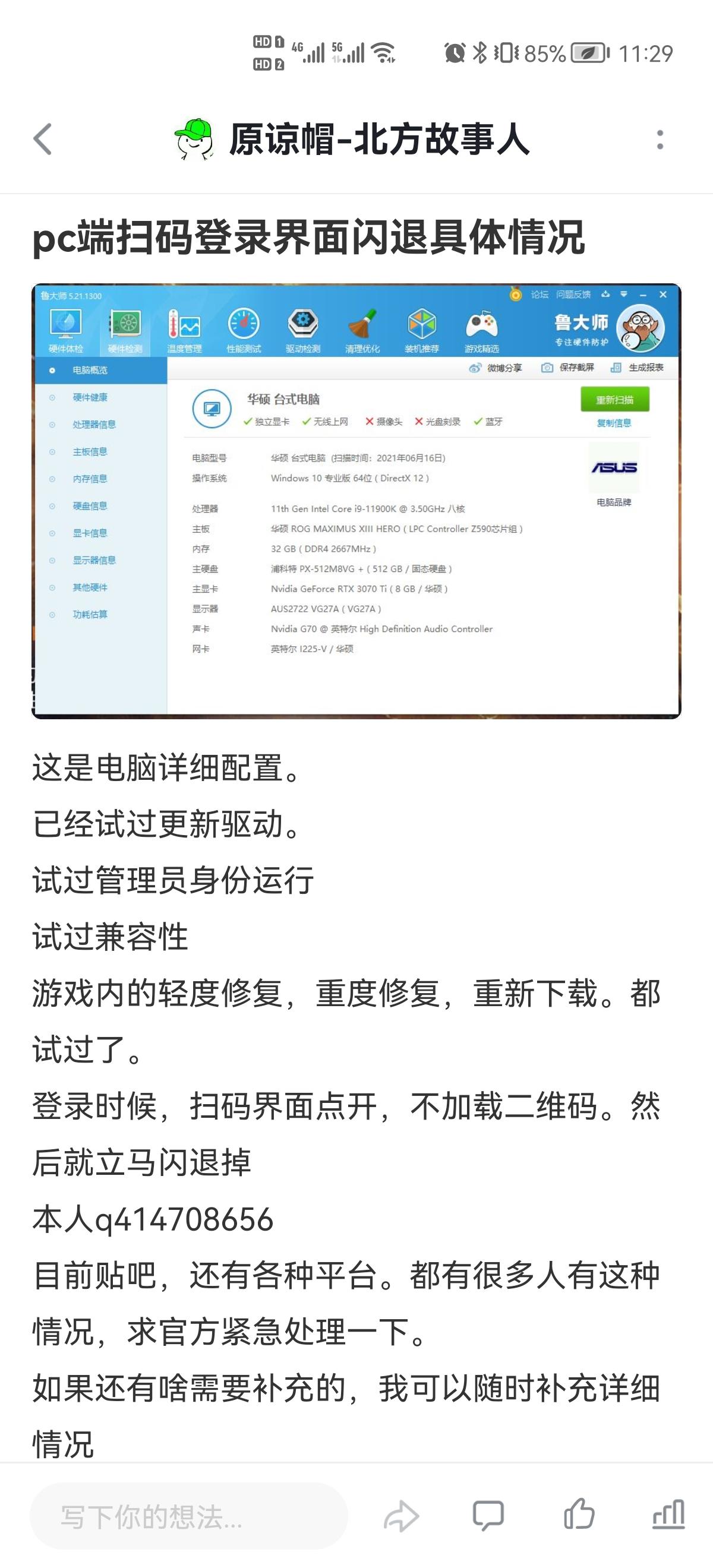 关于pc版扫码登录界面闪退具体情况