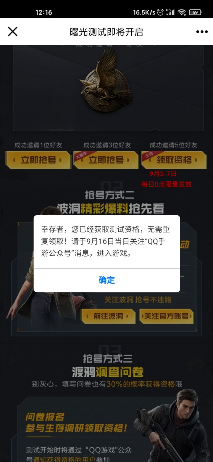 已经获取资格,在哪里查看资格?然后再点这个页面,就提示活动结束