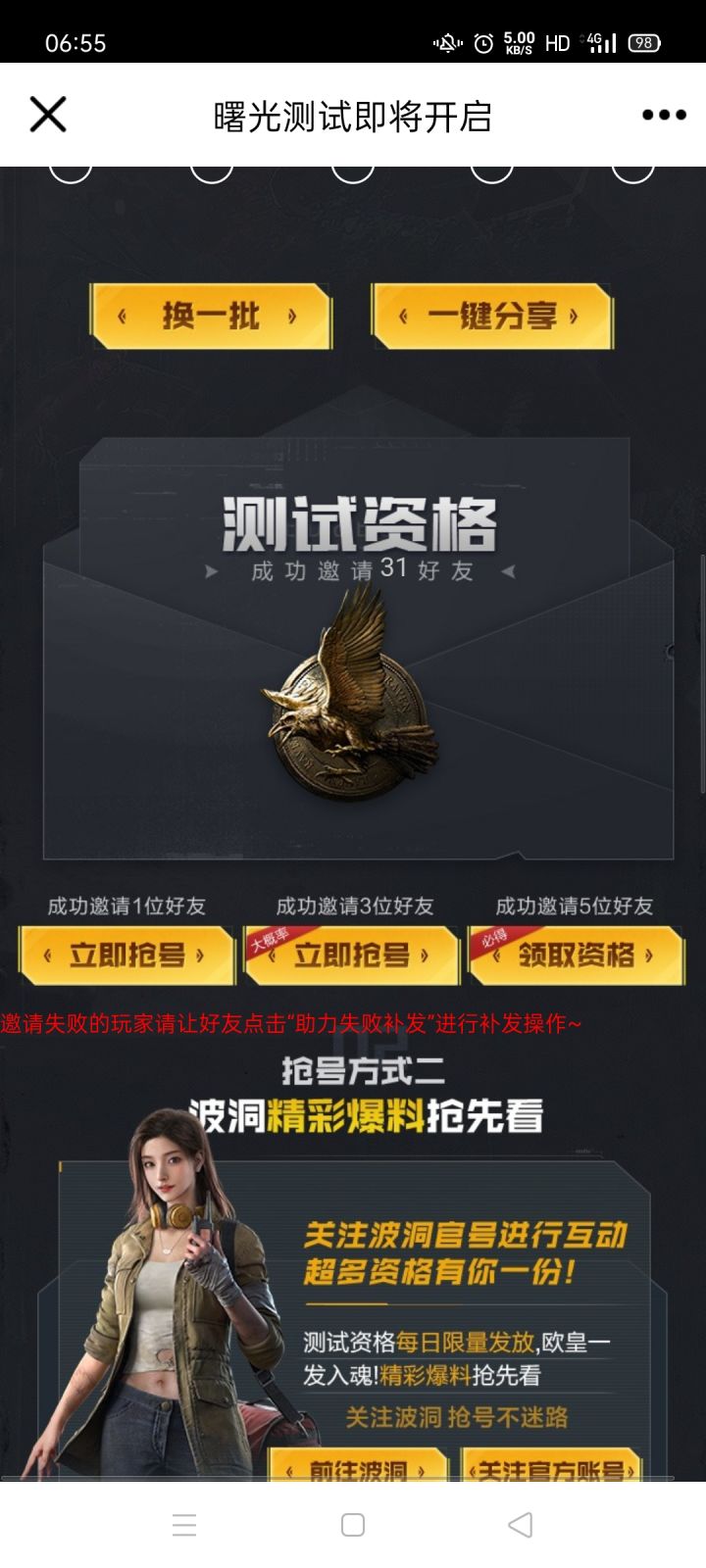 资格获取方法,都可以一发入魂!微信公众号找到这个推送!然后点开,找到这个关注游戏圈后,基本可以一发中资格没加入营地的小伙伴可以来我营地!营地:711531108