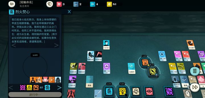 写个游戏心得吧,不定期更新下。算是自己走过的一些弯路汇总。职业只提三个:1-最初的是无业游民没有固定工作,优点就是可能性很多嘛,好像只有总裁一条路。2-医师是很舒服的职业,本身的研究所工作收益就很高,60秒2块钱,理性给的也多。3-教士可以继承上一局的教派和最高属性的教徒加一本书。教徒的教义有特殊效果狂热,我的经验就是激情带灯、杯、心,冷静带启、冬、刃,比反过来的狂热概率大。(没对比太多次,仅个人经验)