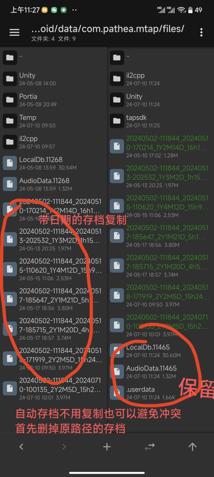 之前在国际服玩了很久的档舍不得的小伙伴看这里首先需要一个mt管理器,玩过星露谷物语的玩家应该比较熟悉,不熟悉的请百度搜索下载首先是国际服路径:/storage/emulated/0/Android/data/com.pathea.mtap/files/下面是国服路径:/storage/emulated/0/Android/data/com.pathea.portia.TapTap/fil