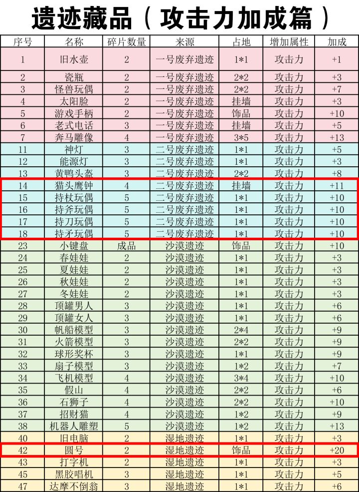 遗迹藏品攻击力叠加家具