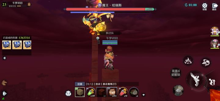 邀请码:470202秒杀BOSS简单来说就是在BOSS脚下垫块,垫高打掉盾击退直接摔死,只要高度够就是秒杀。看一下我打工会魔王(工会魔王去试的时候,出错了就中途退出不耗次数)一掉地上就结束了,所以没有截到死亡场景。这种方法适用于可以垫块的图。有两种垫高套路,一是SSR火金贾两星隐身垫高,缺点是有的时候BOSS乱动不好垫。二是直接冲上去垫,缺点是会被打,容易死。魔王打赢了可以有160公会币,