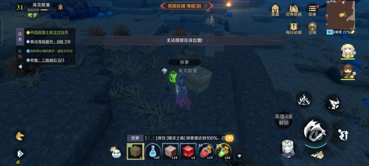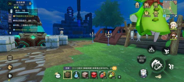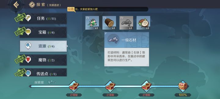 游戏第二个图,要个石材,岛上所有石头全部撸掉了,背包里都有34个石材了,探索还是过不去…这是bug吧???😶😶😶