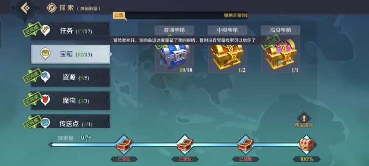 感觉像是寻找宝藏,然后跟着任务提示完成任务,收集物资,有探索等级这种。