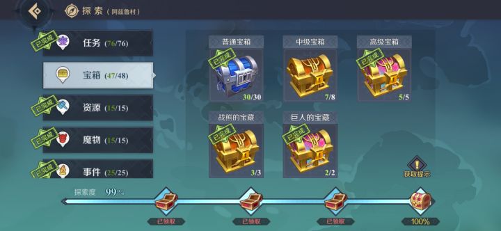 阿兹鲁村最后一个中级宝箱在哪?就差一个宝箱就100%了,始终找不到,地图上宝箱雷达也不显示,难道是BUG?