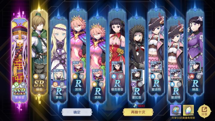 又一个SSR,第三发十连前两发有一个出了,还有一个是单抽出的,3个了😄
