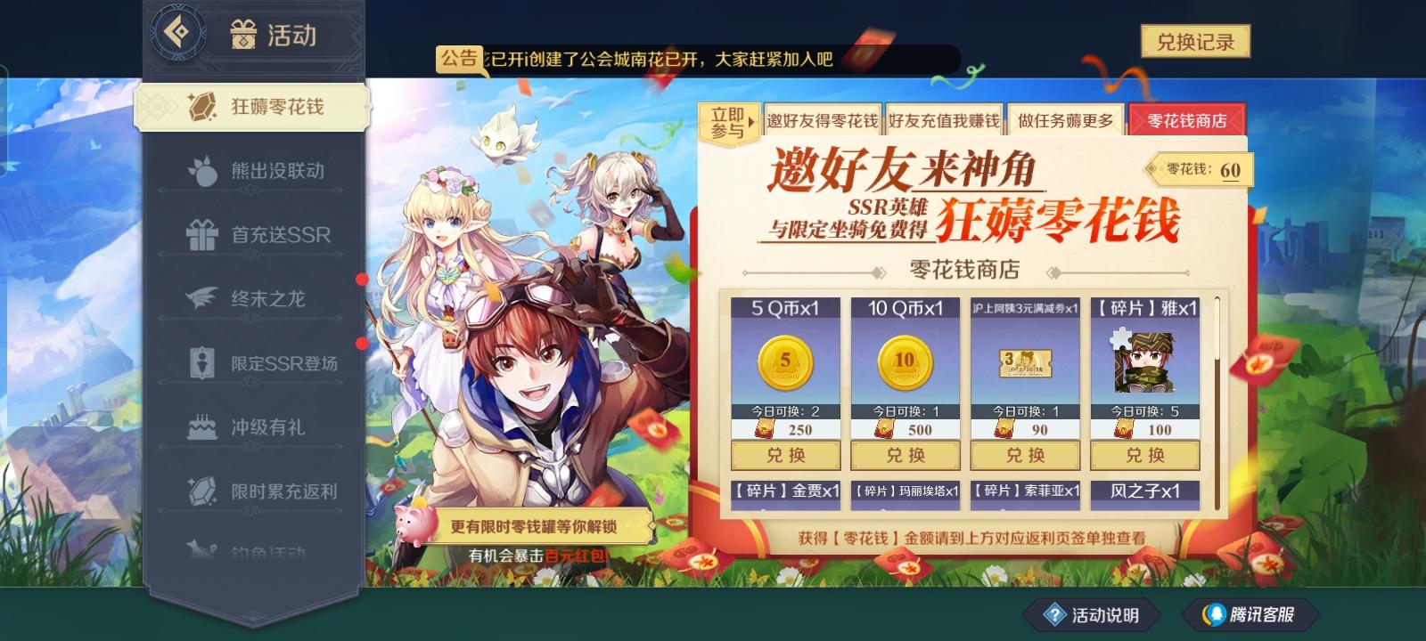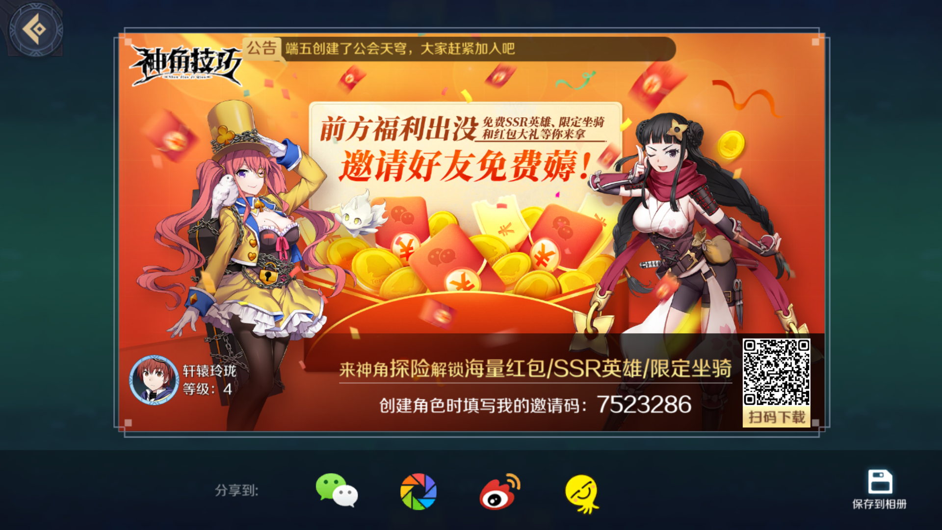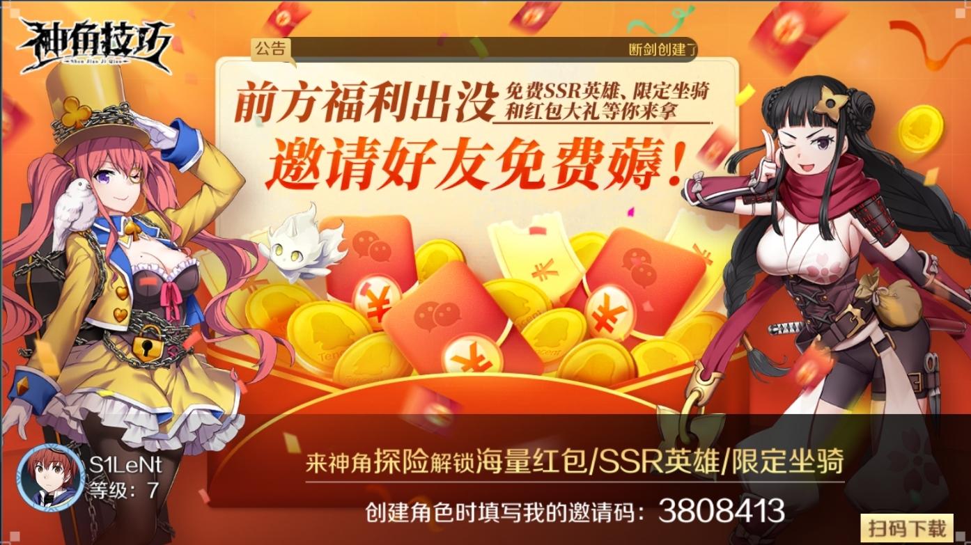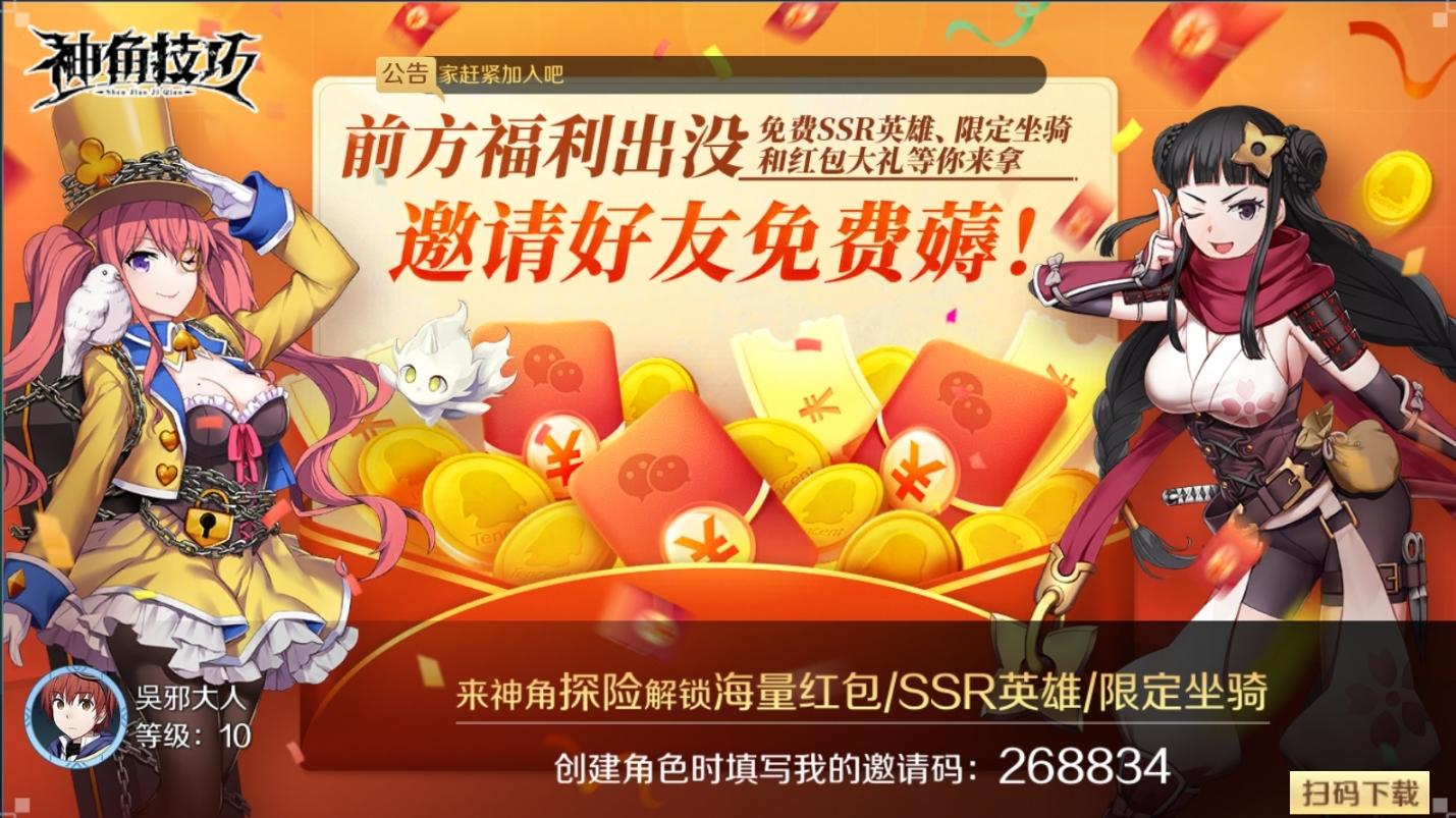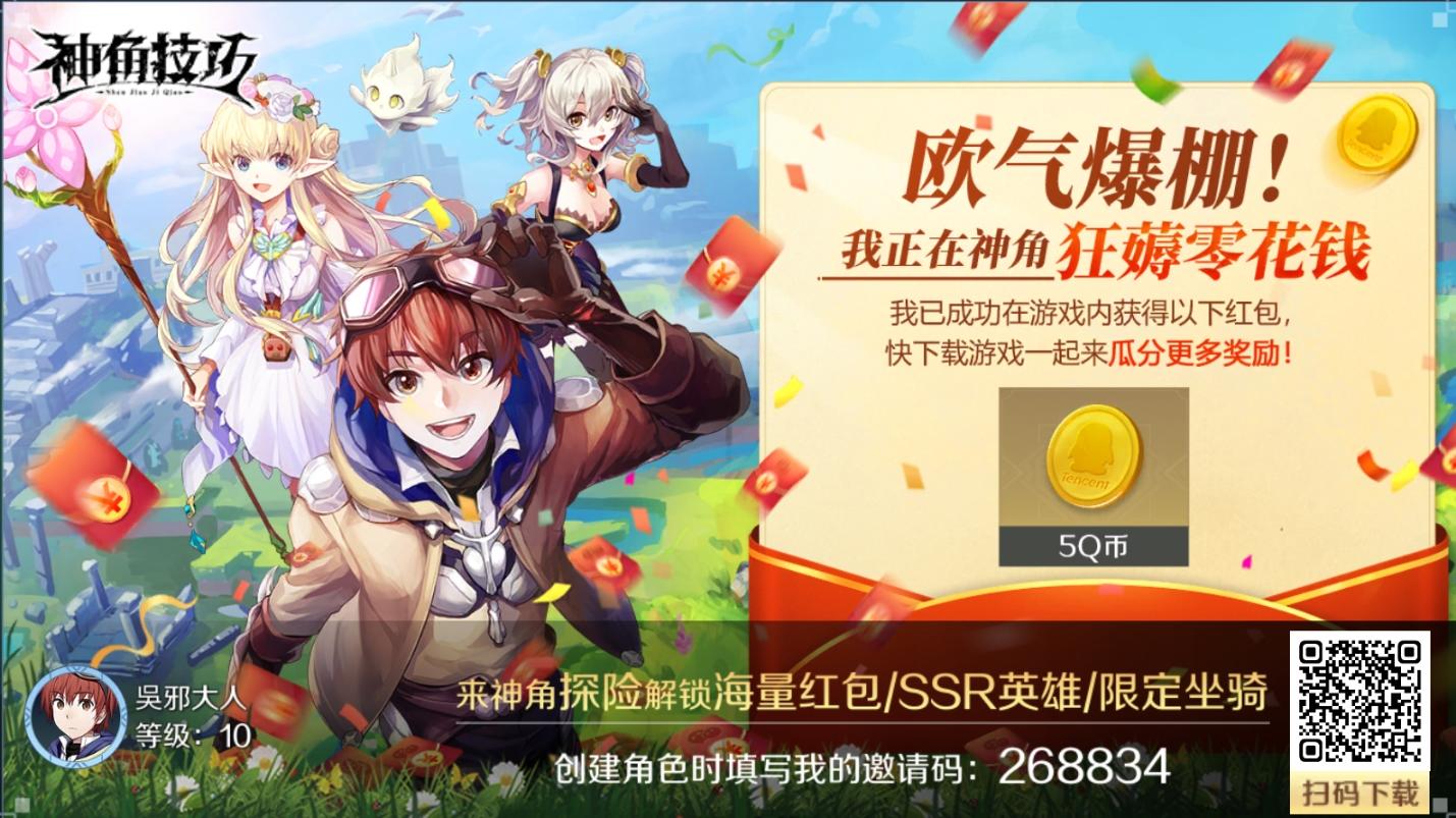 QQ区填邀请码7834459获取零花钱,可以换英雄召唤券,感谢一起玩