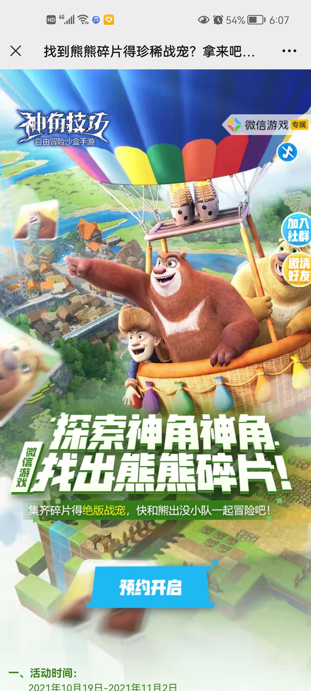 各位创造师们,大家好呀~我是你们的新朋友零钱罐,你们也可以叫我罐哥,什么,你们找艾丽西亚?她被策划老哥揪回去 跑现场 测试环境啦~以后活动这一块就我来负责了!毕竟罐哥肚子里,能装的福利更多嘛。说起联动这事儿啊,其实是这样的,本来在森林里快乐采蜂蜜的熊大熊二,因为一场意外,被带到了神角世界。为了救熊大熊二的光头强,也毫不犹豫的冲进了这一角碎裂中来。进入神角世界后,遇到了雅等人,并且了解到,是巴洛