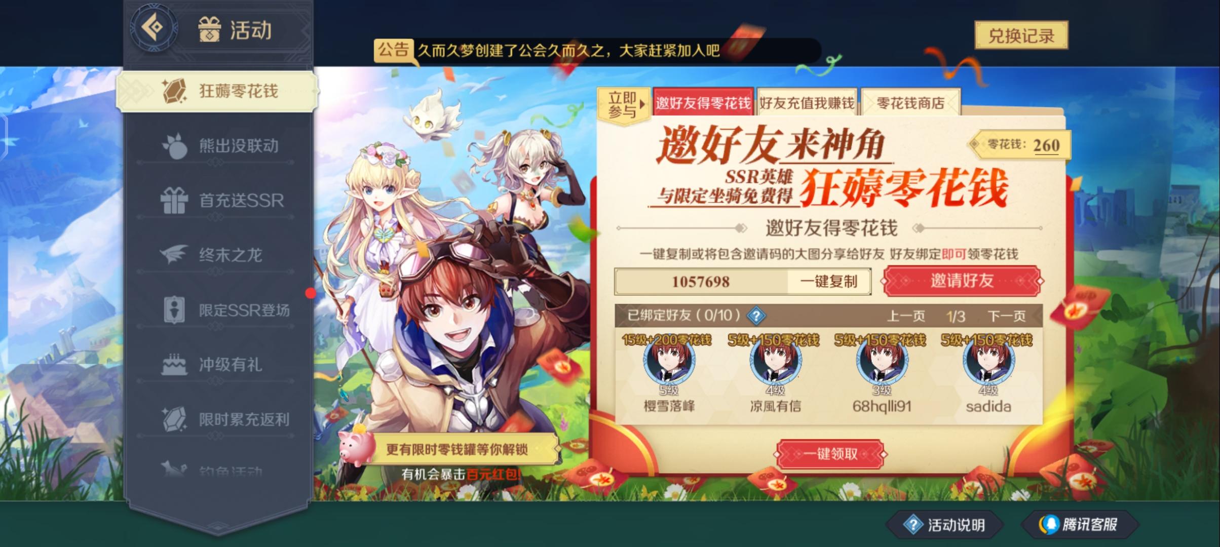邀请码4115802新手进去右上角绑定好友可以得50零花钱,可以换q币
