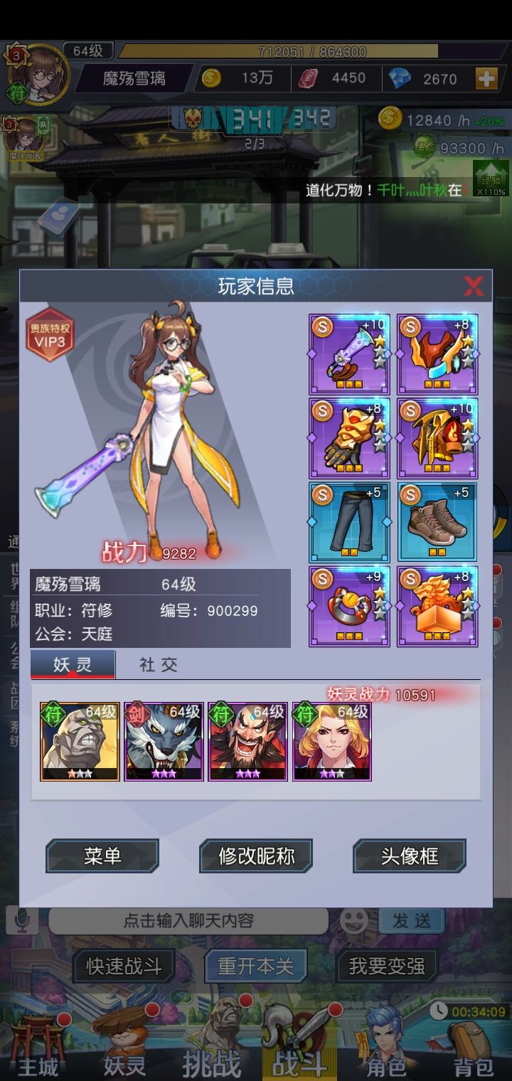 首先呢,选主角很关键,一开始是三种职业:符修,剑修,器修, 剑修攻击高,器修仅此,符修(本人玩的就是符修)他大招是加血,但是不够看,所以血亏,一开始选符修不是太好,推荐剑修,大招免疫啥的,还是有伤害,符修就一个像样子的技能。 然后就是抽妖灵,装备了,30级是蓝装,60开始出现玄装,就我个人来说装备就只要抽两次就可以(脸黑的除外)。 剑修最好抽一个加防回血或者吸血的妖灵,符修就看金刚,鬼判其实也不错