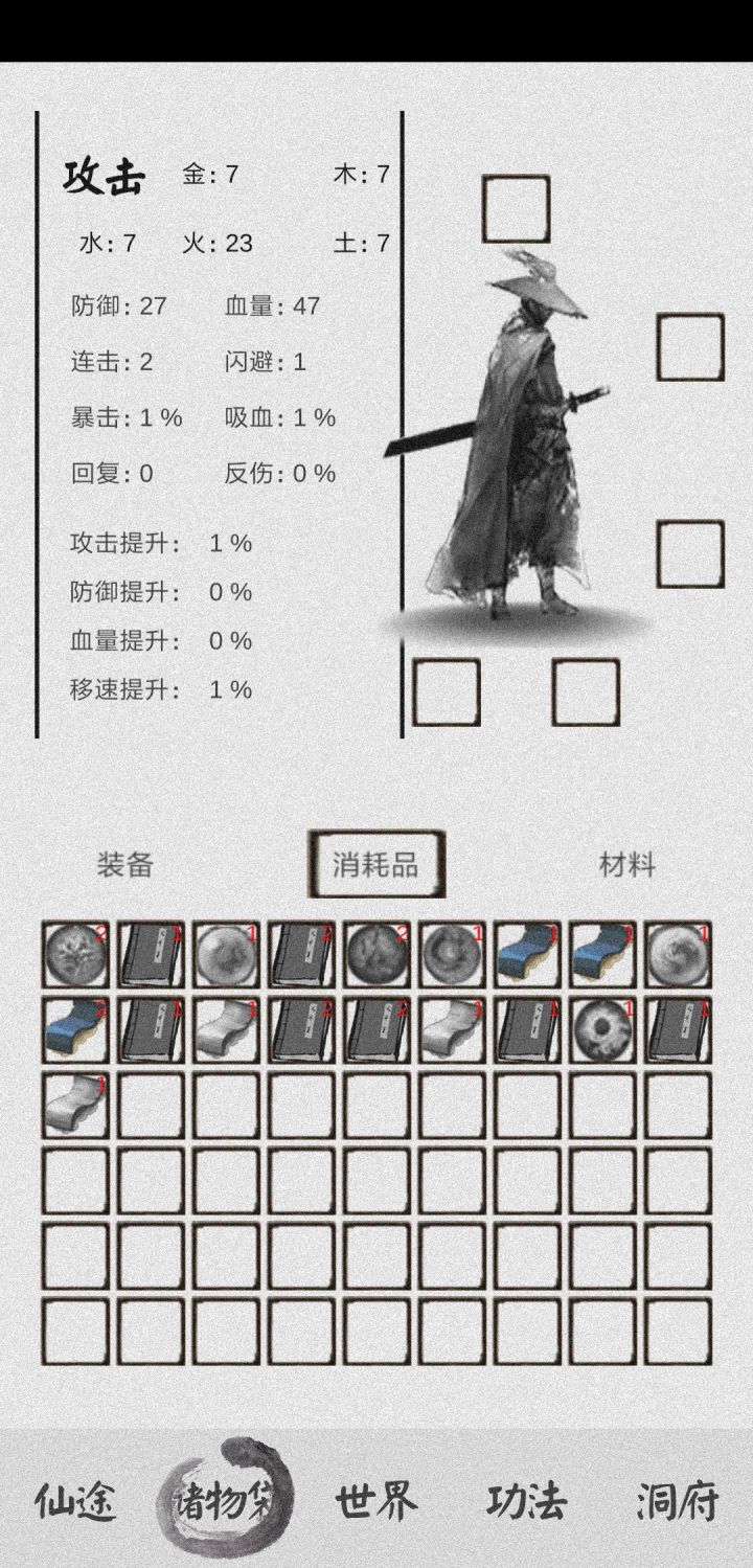 目前已知功法战斗 火 控火诀 加防木 奇木诀 加连击水 呼风 加防御金 叱念真雷 加闪避土 阴魔斩 加闪避修 冲霄决 12%修为获取玄阴经 15%修为获取辅 虚清决 6%血量破 引力术 12%突破成功率八极崩 15%突破成功率体 虎骨锻筋经 900练体之后会随时补充
