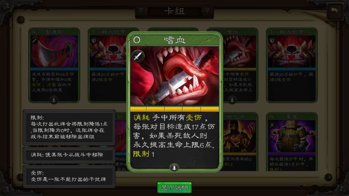 葛根,大家好,我是抵偿帅的猪精精大帅比,今天是个好日子给大家分享一下我的游戏攻略葛根,好了,废话不多说,赶紧进去正题这游戏分为三个流派,目测是三个哟。分为毒派狂战士,还有百射葛根,流派名字是我也自己起的,哈哈说说卡牌,简单的我就不说了,说重点!重点!先说狂战士必备卡牌卡牌图片展示的都是在火堆升满级【第一组】顾名思义,补刀用,会加生命上限,前期多叠,后期生命高,这牌需要配合能打出