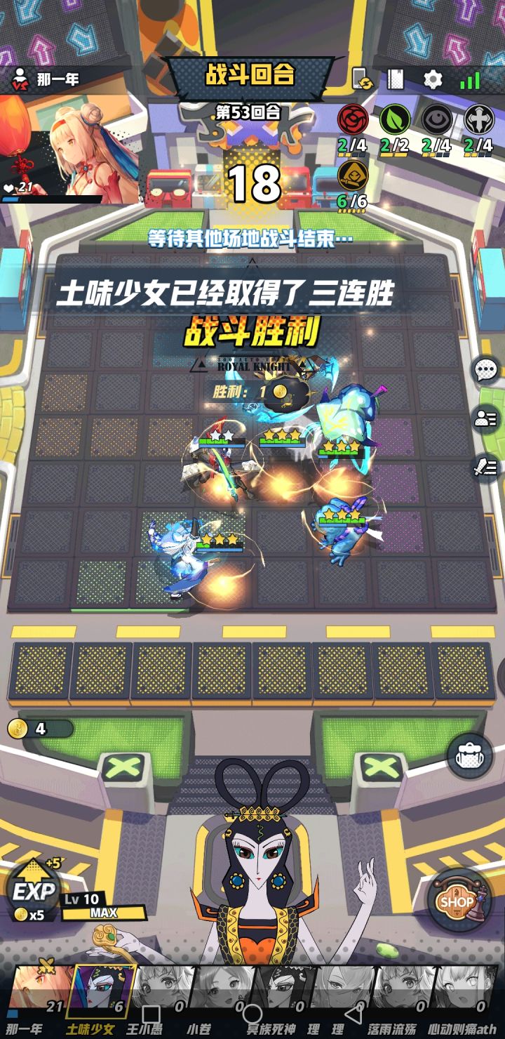 我16血,从50回合开始就每回合掉血好像,最后我这边打赢了,还是系统掉血死了,可惜啊,我的猴子女下回合就两星了,一波带走他,但是前期血少,我先被系统扣血死了,我们从45回合开始就一直互相防守成功。