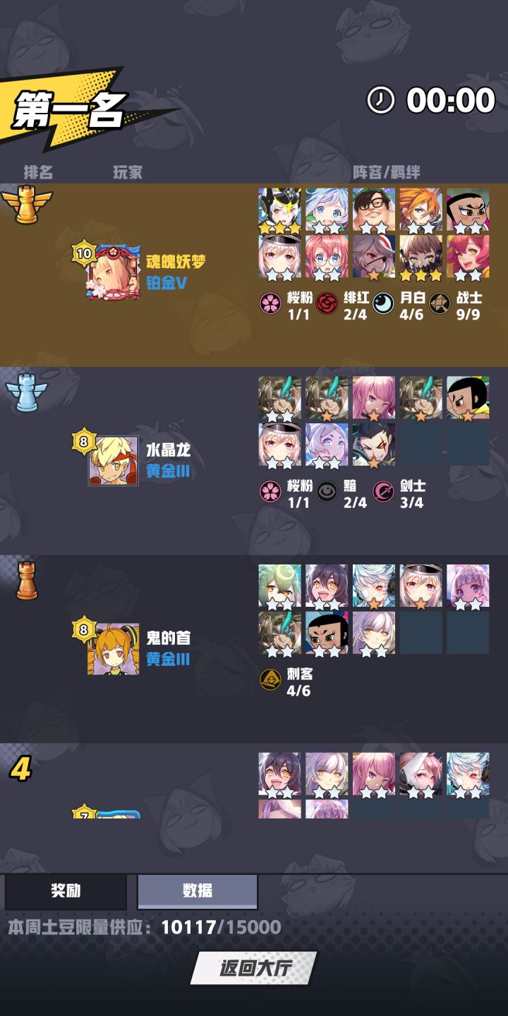 结果找不到查看战绩的地方都说刺客强,想玩一下结果根本拿不到牌感觉精灵三龙(月白苍灰),精灵骑士(月白剑士)可以玩一下。前期月白战士有龙牙、千代比较好出,再配一个战士三战士起手。再拿刺客或者剑士打工撑场面。刷出1费苍灰的话,可以考虑拿三个苍灰。这样三战士三苍灰是6个人。再拿一个月白凑3月白羁绊是7个人,这个月白可以选艾玛莉,又有了一个2剑士羁绊。继续可以再选择两个剑士凑4剑士羁绊。这样九人口