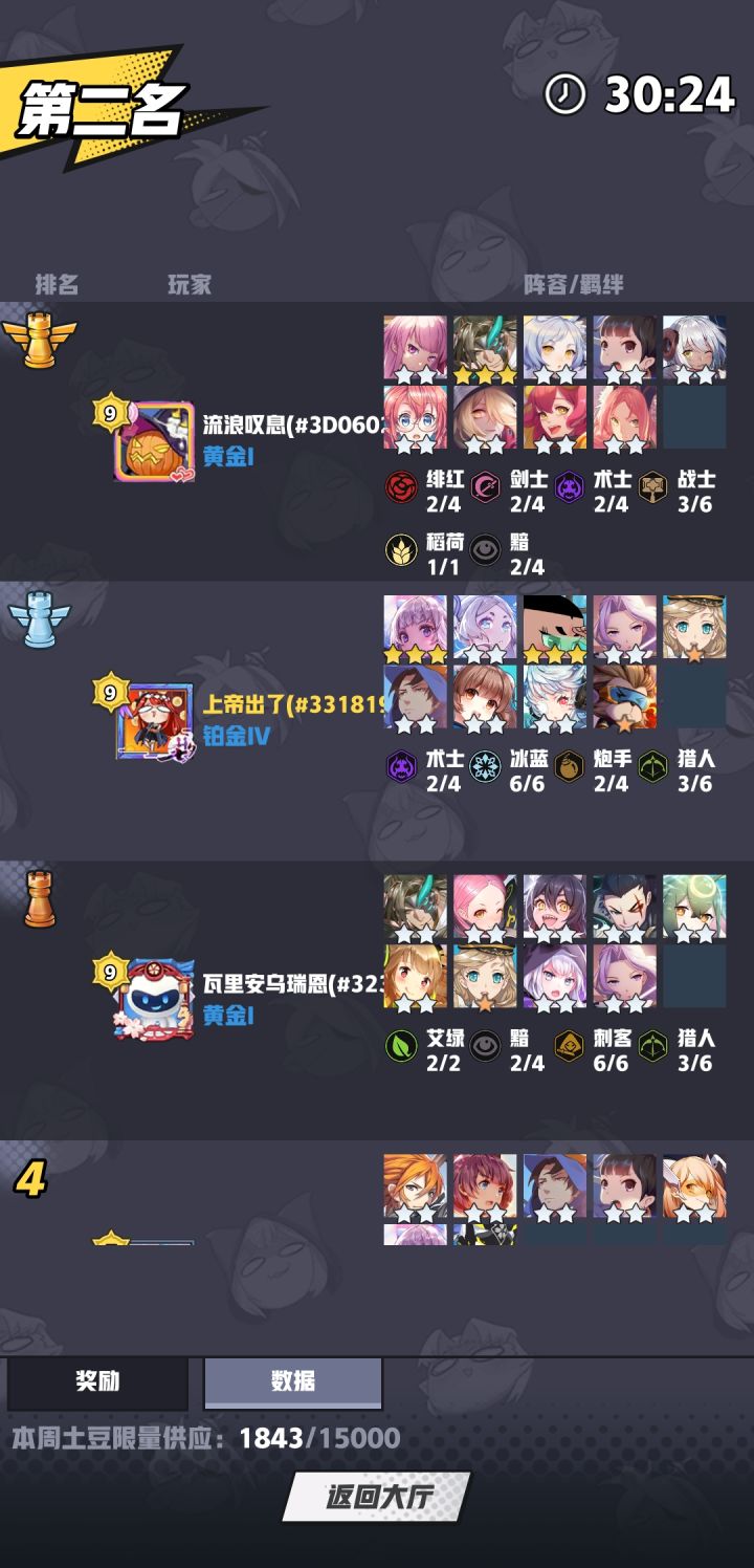 就刚刚,打到前三,第一48血,第二(我)6滴血,第三3滴血,然后在没有打野怪的情况下三个回合没有人淘汰 特别是那个第三名,我切过去看他和第一打,输了,结果没有淘汰……回到自己的场子,发现md原来都在打镜像……我觉得镜像来一两次就好了,别一直打镜像啊……而且打就打吧,你放两个人pk,另外一个镜像不就好了,非要三个都是镜像 还连着三回合……强拖到48回合……