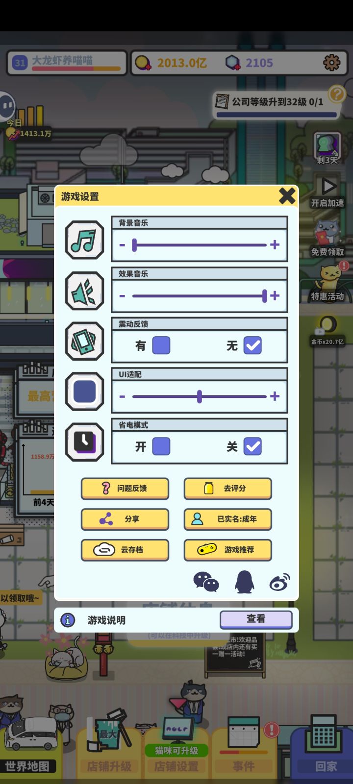 昨天还是正常的,甚至我凌晨两点还是正常的。今天早上起来就存不了档了,兑换码也没有了。重启好几遍了也不可以,VIP下面那个金币点不开,而且我凌晨的时候金币是1600+W一次广告,现在只有50。免费领取里的金币一直都有问题,提示我可以领1000+W金币结果看完就10+W