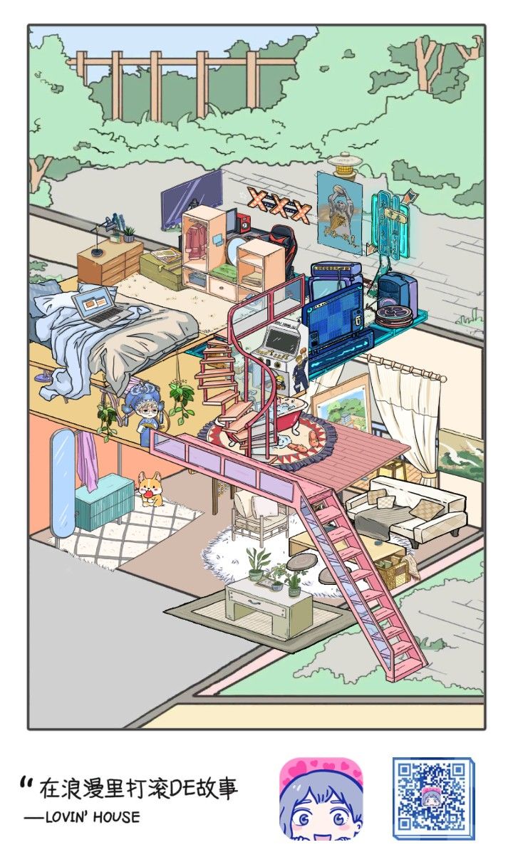 搭三层是真滴快乐!第一层是玄关,厨房(就一个小冰箱),客厅,阳台(观景写生)第二层是浴室,乐器房,打机观影运动一体的多功能娱乐房第三层卧室