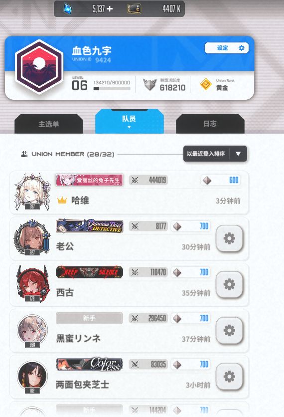 尽量活跃,联盟会战每天至少出一刀id9424我是受够了小游戏拼命凹,联盟是一刀不出的别的没啥要求