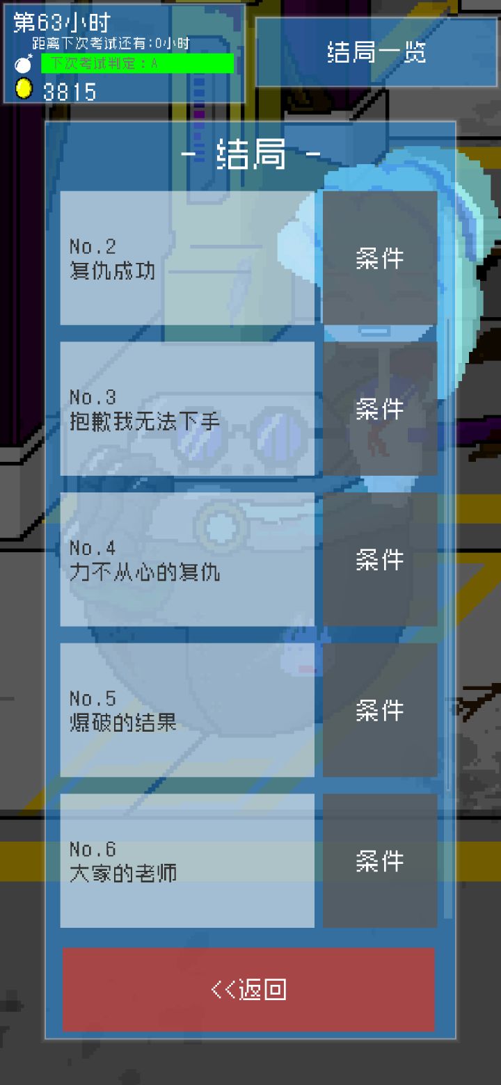 注意:此贴含详细攻略以及轻微剧透内容,请谨慎阅读。就在我把结局1摸出来的第二天就达成了全结局!(结局1本人有另一篇贴子专门阐述。)不得不说这个游戏在表面上看似很简单,实际上是很烧脑的一款游戏。这七个结局让这个游戏以一个圆满的姿态呈现在玩家面前,实属本游戏的灵魂所在。除结局1外的其他六个结局相对来说达成条件能简单一些,游戏流程也相对较短(某些结局在第七次或第八次考试选择投放即可达成),在完成