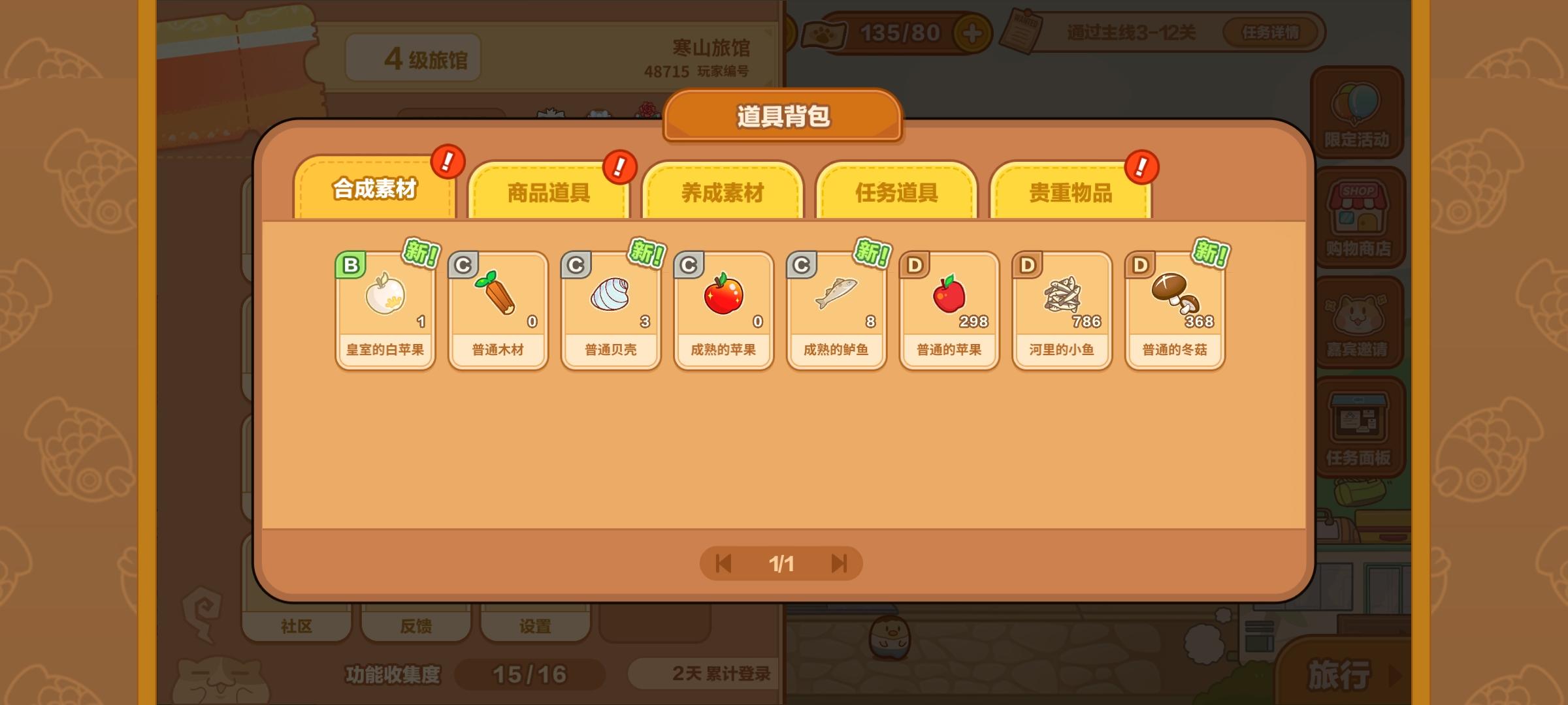 补一句,在仓库领取的资源确实是可以记入做菜的资源总数里的