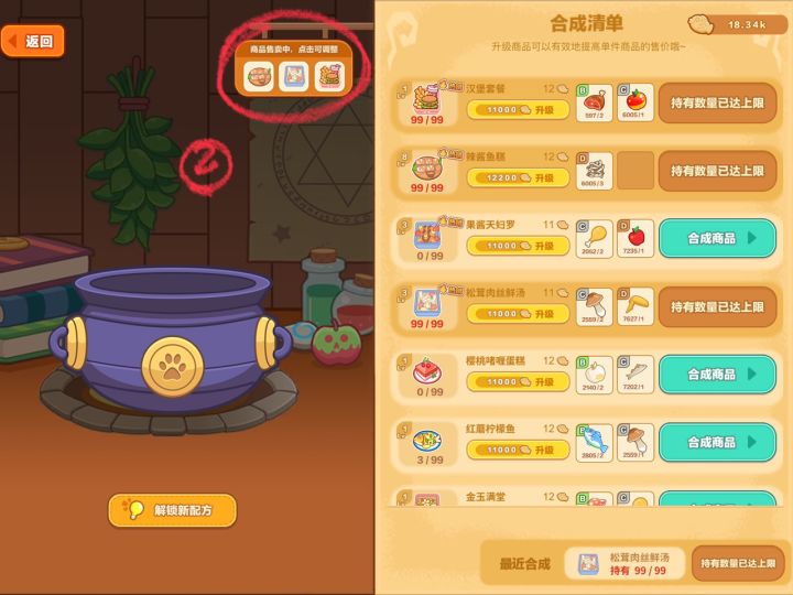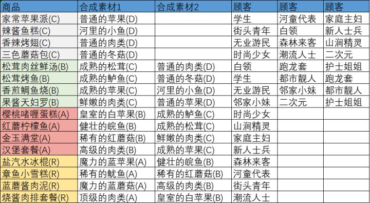 炼金室建议先把B、C级的商品配方解锁升级,因为能覆盖所有顾客高级的配方有专属的顾客,对应的合成素材等级更高,A级的合成素材需要农场升到8级解锁B级任务,关卡能刷出来的很少