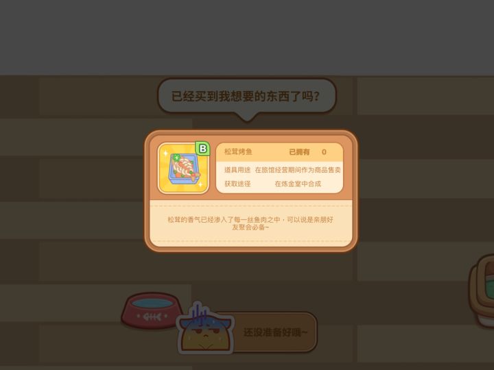 【攻略】查漏补缺细节四处搜刮版家咪们好!攻略区大佬云集相信日常攻略都很详尽了,那我就目前自己发现的一点点细节进行补充,欢迎大家参考指正~o(`ω´ )o1.猫咪宿舍内出现猫咪任务让准备食材怎么办?例如图3中松茸烤鱼,在炼金室合成即可,不用售卖出去!合成好后回到宿舍提交任务即完成(一般是获得几个车票)2.大家可以点开背包看看有没有礼包可以打开,或许