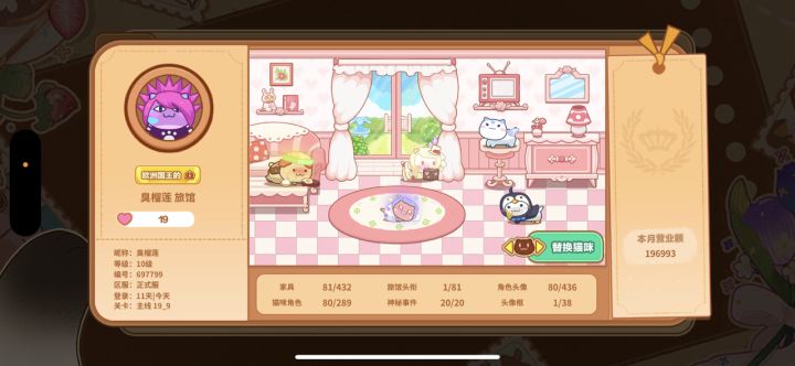 今天是我玩猫旅馆的第51天 一共玩了54个小时 我的旅馆已经到达满级12 我的主线进度是35_1 玩了这么久 我觉得猫旅馆物语这个游戏可玩性很高 你可以搭建宿舍养猫 可以过主线偶遇一些小猫 可以装扮自己的旅馆 解锁菜单和客人的故事 令我最心动的就是收集猫猫 我玩了这么久我的收获也是显然易见的 为了抽到心仪的猫猫我也氪了月卡 我觉得很划算 猫旅馆每周限定的礼包真的很划算 而且周年庆的活动我也很喜欢