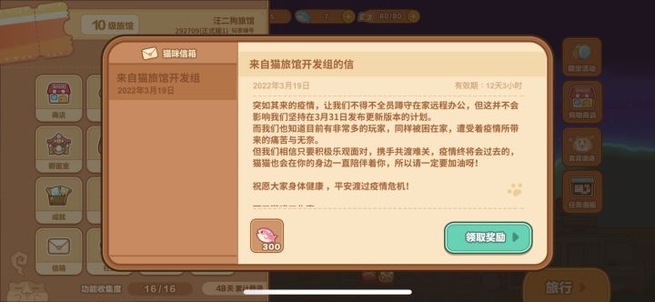 【该活动已结束】从2021年7月15日-2022年3月30日,在本帖中分享一段与猫猫之间的故事,对于优秀的故事内容,我们将发放以下奖励:(1)将获得TapTap限定奖励 - R级猫角色”塔塔“一只(并可同时解锁该角色的限定头像),重复获得该角色奖励时,可以用于提升”塔塔“猫角色星级。(2)将故事内容加入到后续的正式更新版本中:我们将在后续的版本更新中加入更多猫角色故事内容,以及跟猫猫更多的