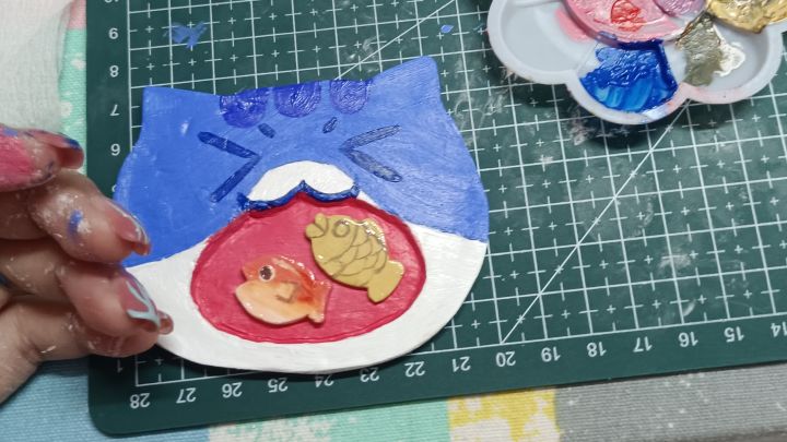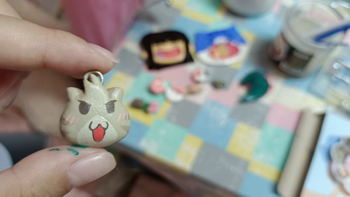 1.淘气摇摇乐(戴隐适美版)。这是我入坑石塑粘土做的第一个作品,瑕疵很多,还忘记画腮红,淘气嘴巴上那一圈是因为我掏嘴巴太浅了,鱼摇不动,我就加了一圈美甲固态贴片胶。后天开学去学校再做吧,喜欢美美(˵¯͒〰¯͒˵)2.阿春吊坠。这个做出来是送给我朋友的,她也被我拉入这个游戏坑了,她也叫阿春。我入坑这个游戏几个月了,中间有一段时间没上,我的朋友阿春却坚持天天上线,比我还着迷。所以特地给她做了个吊坠₍