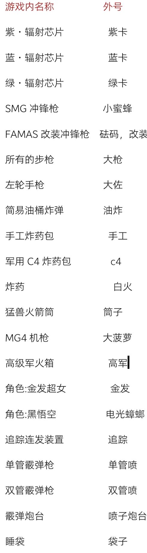 《王牌战争: 文明重启》中道具的外号 作者:(星赐赐)