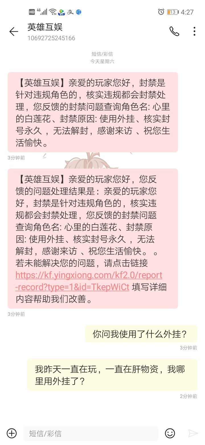 当官方发出这一条信息的时候,我此时此刻已经。压抑不了心中的怒火,你们的研发团队第一时间优化了监控系统。这是让我最愤怒的,你们这叫优化?我怕你们这是叫瞎子点中谁就是谁,难道这就是你们后台的检测系统?我想知道你们是怎么能判断我是外挂,然后封了我的设备。 请你们在你们的系统后台找出我的名字:(心里的白莲花)看看我到底是用了外挂还是用了什么连挂器,突然就被封号,我们来理论理论,别跟我说你们是在用什么判断力判断这个怎么怎么样就是外挂。那我可以很明确的告诉你。你那是瞎子点人 我想知道你们封号都能分错人的话。怎么能让我们安心?让我们共同守护,请问你守护了我们吗?让我们坚持正确的对游戏态度那你们有表明自己态度吗,我们的反映得不到解决,我们突然被封号20年得不到解决,这就是你们官方说的态度?