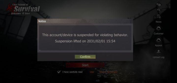Sorry, I do not have a problem, but the game banned me 2031 without a problem. Why this year and the text I am the player last island of survival and I shipped the balance of 700 euros Everything is present This is a problem in the game update New means the game in problems I want my wish