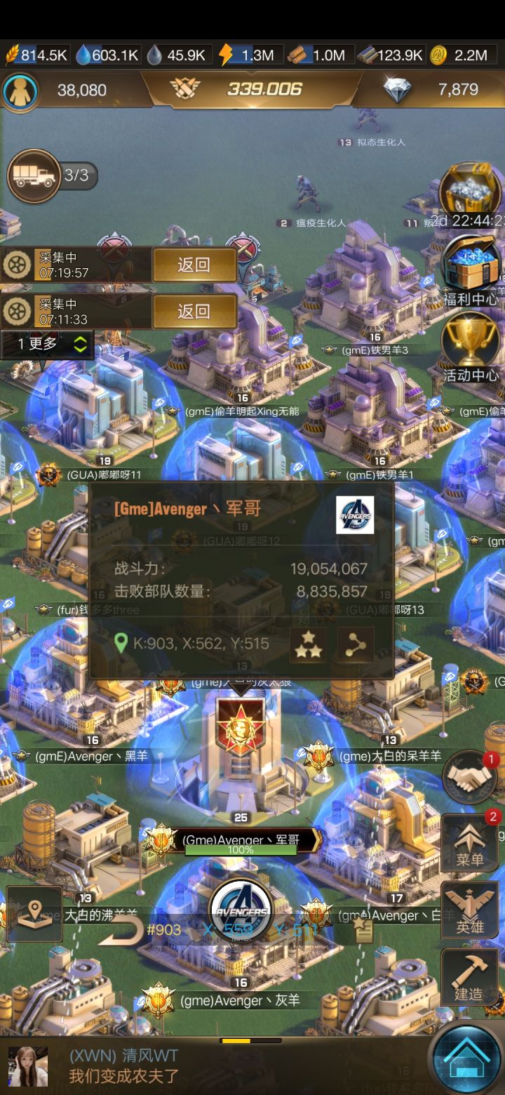 我们一个913新区跟一个比我们开了早几个星期的903打,人家最高三千万战力我们最高七百万嘛玩意,对面都有总统了,凝聚力比我们强,这不明摆着被殴打么,我看哭了