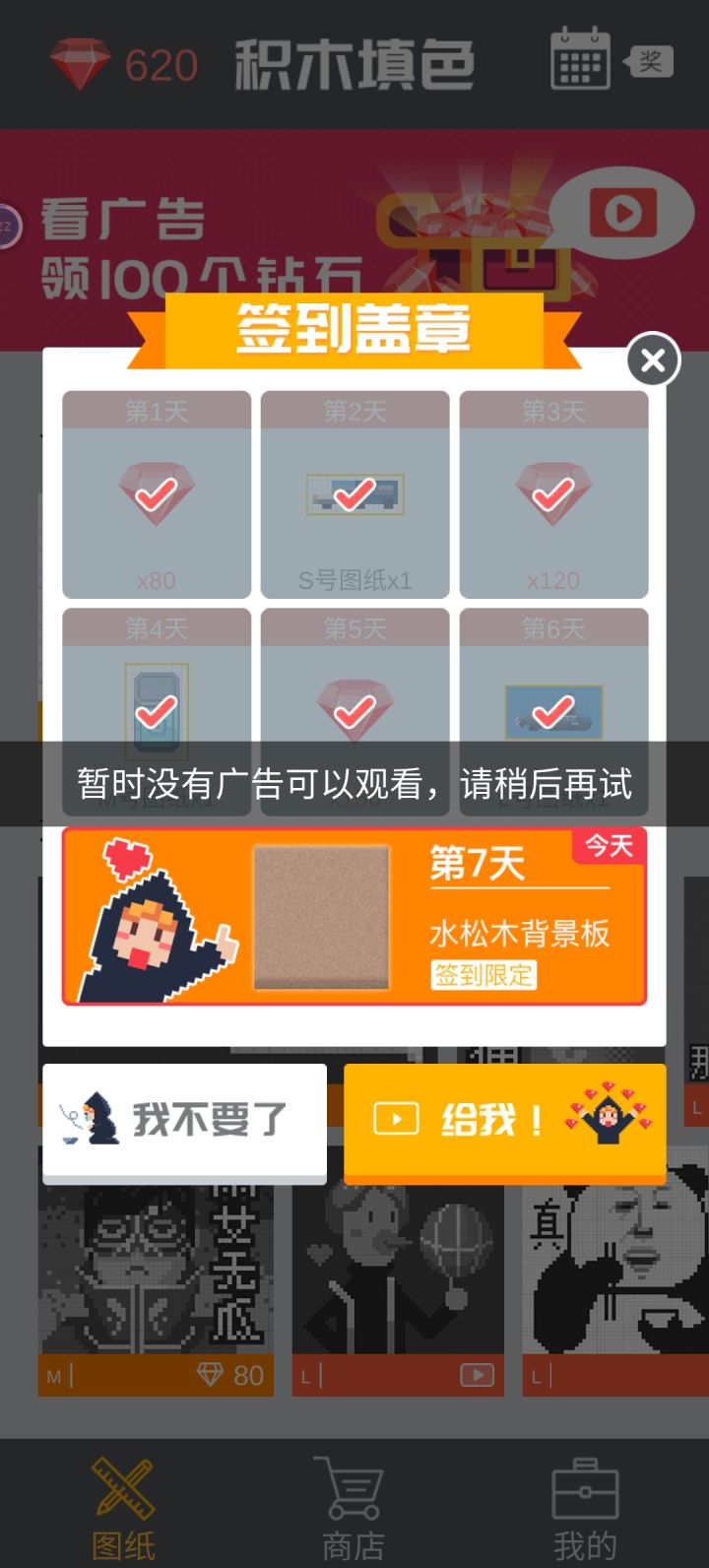 超多自己想要的图纸需要看视频才能解锁,可是又没有广告可以看,根本就不可以玩。