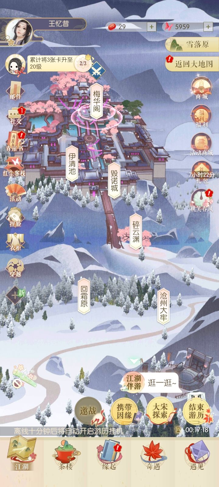 (求人不如求己)开局只选一个角色送好感道具堆到1100,之后就可以用金币买材料做好感道具搞好感。(解锁关卡到第十章需要8000好感度)开局的50体力先别打剧情关卡,去玩活动(夏至清和结束了,最新的叫宝奁盈怀,如果之后还有更新就玩当期的就行)的推推车(如下图)点击技能和加速键,全是人机很简单,打一把之后去活动商店买阅历,回去接着打满并买两次红豆(红豆一天限制兑换三次体力),剩下的币直接活动商店买全