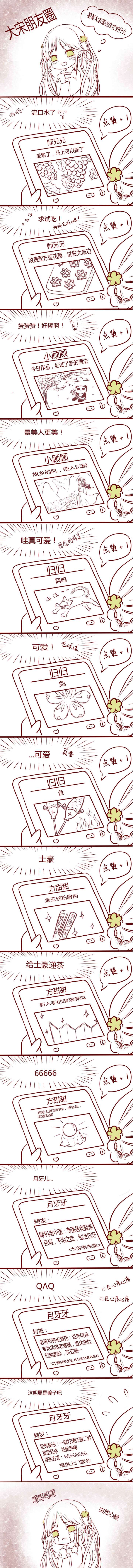 来自微博的宝藏太太@kurumia库库库 的短漫两则大宋盆友圈师兄的朋友圈(宜家宜室好师兄,师兄求投喂)惜朝的朋友圈(大宋风光、卿卿与我)闷葫芦的朋友圈(动物是人类最忠实的朋友)方好看的朋友圈(大宋炫富才俊和微商不得不说的故事)(在作死的边缘疯狂试探)月牙儿的朋友圈(哇的一声,哭了出来,月牙儿我带你穿越时空,会治好你的,那种虚假小广告咱别信了)彭尖,没想到你是这样的彭尖竟然想抢我大