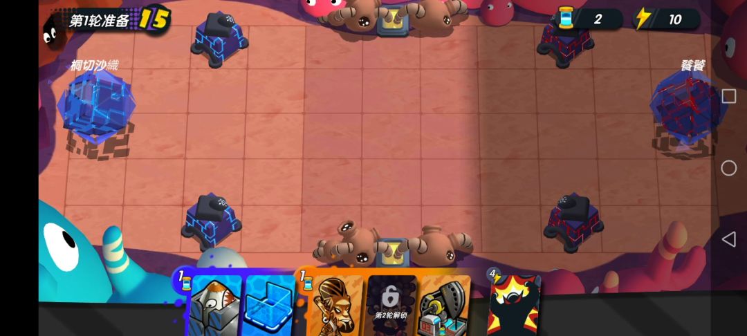 开场放一个屏障一个能量器,第二回合同样,而屏障在还没放兵的时候不推荐放在最上和最下那行的格子,因为对面如果放爆炸头,对面手长不用进塔就能打到屏障而对方的攻击是aoe伤害,己方的塔也会掉血,而放的第一个兵推荐是爆炸头同时将屏障也移到最上或是最下的那行,当回合开始时己方的爆炸头可以在屏障内清完兵的同时还能顺带把电磁器也拿下,得到的电磁用来放狂暴加速核弹的升级时间,基础思路就是这样,具体的看视频(PS: