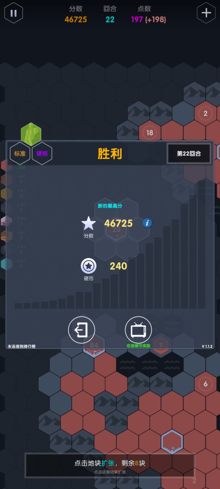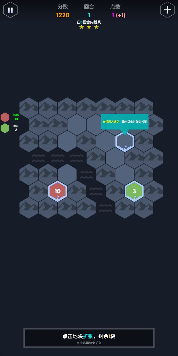 游戏玩法简单,一直赢,专家也是连赢两局,第一局顺风,第二局逆风 基本玩法:占地盘,占越多能分配的点也越多 攻击:通常情况双方受到同样的点数伤害,也可能守方+1占优,(只有2点才能攻击,1点没有攻击能力) 防守:一回合只有一次防守机会!! 抗衡:双方点数相同,双方都不攻击。攻击的话。进攻方会损1点 防袭:守方比攻方少1点,导致攻方无法连攻 抗衡与防袭的区别:抗衡更适合前期,因为防守有利,对方损耗+1