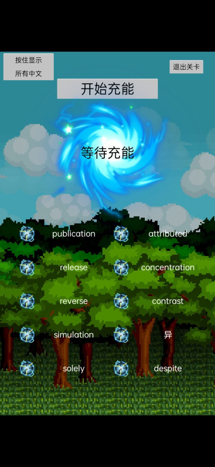 很好的一款游戏😁感谢开发😋希望改进的就是:充能阶段的单词太小了,又是白色的,看不清楚😂