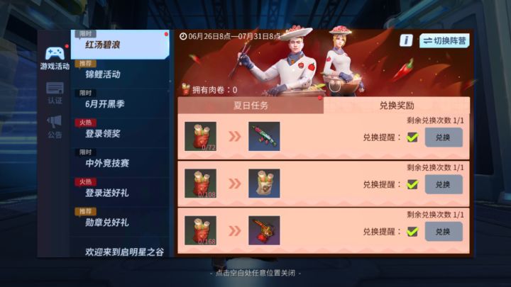 红汤兑换奖励一览碧浪兑换奖励一览第一条请慎重选择然后活动一共是36天,满勤可获得396材料祝玩的开心!