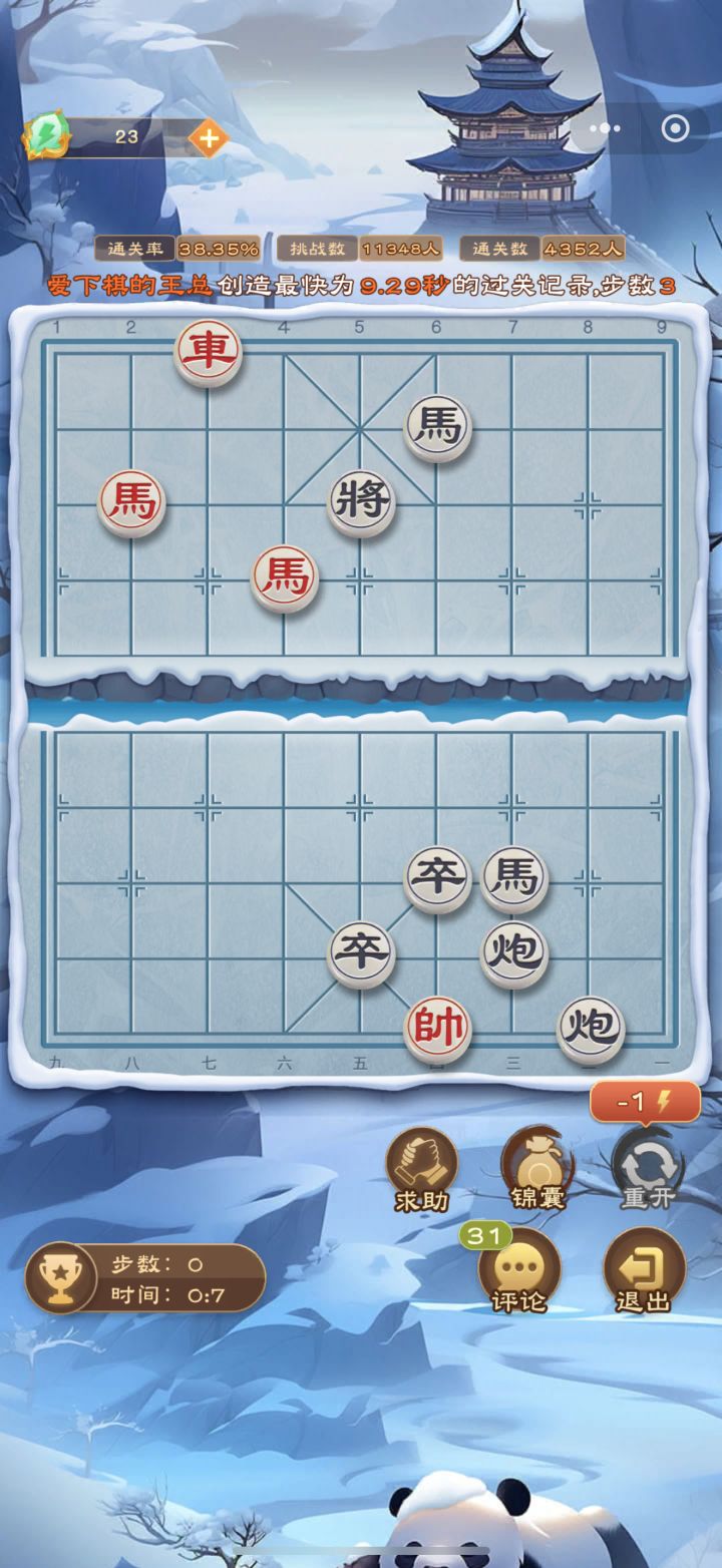 各位棋手晚上好呀!下面为大家奉上今日的每日残局攻略~1.车七平五2.马八退七3.马六进八如果各位棋手有更好的解法,欢迎在评论区留言喔~