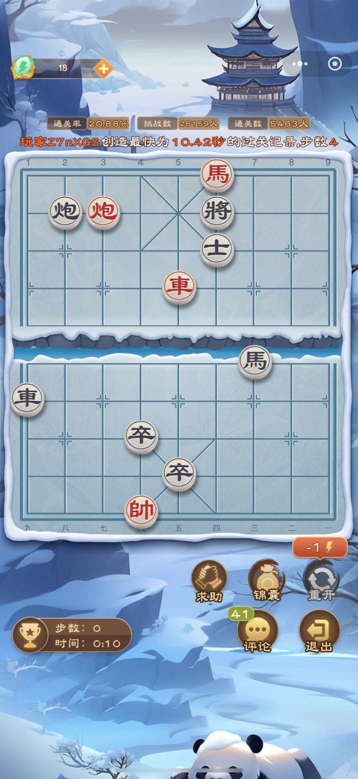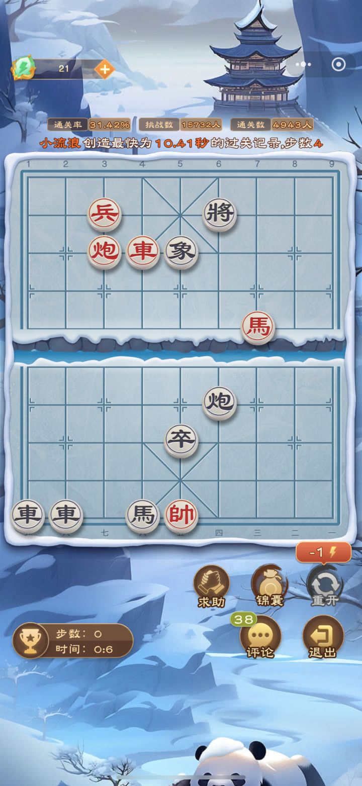 各位棋手晚上好呀!下面为大家奉上今日的每日残局攻略~1.马七进六2.车四平五3.兵六进一4.炮八平六如果各位棋手有更好的解法,欢迎在评论区留言喔~