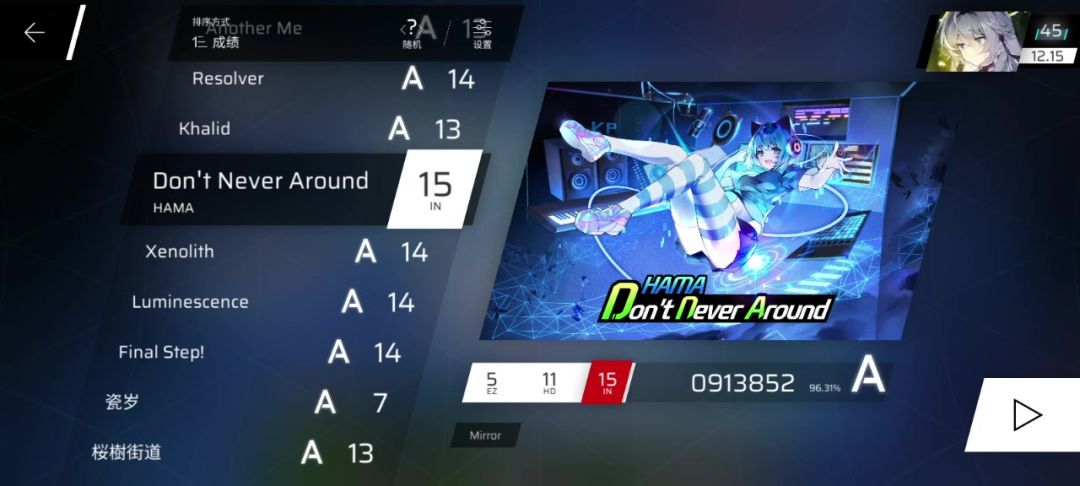 刷到有人14收15,想到我15.17连1首15都没收,感觉好虚高(查分是在哔哩哔哩上刷到的一个查分网站查的,界面不一样)