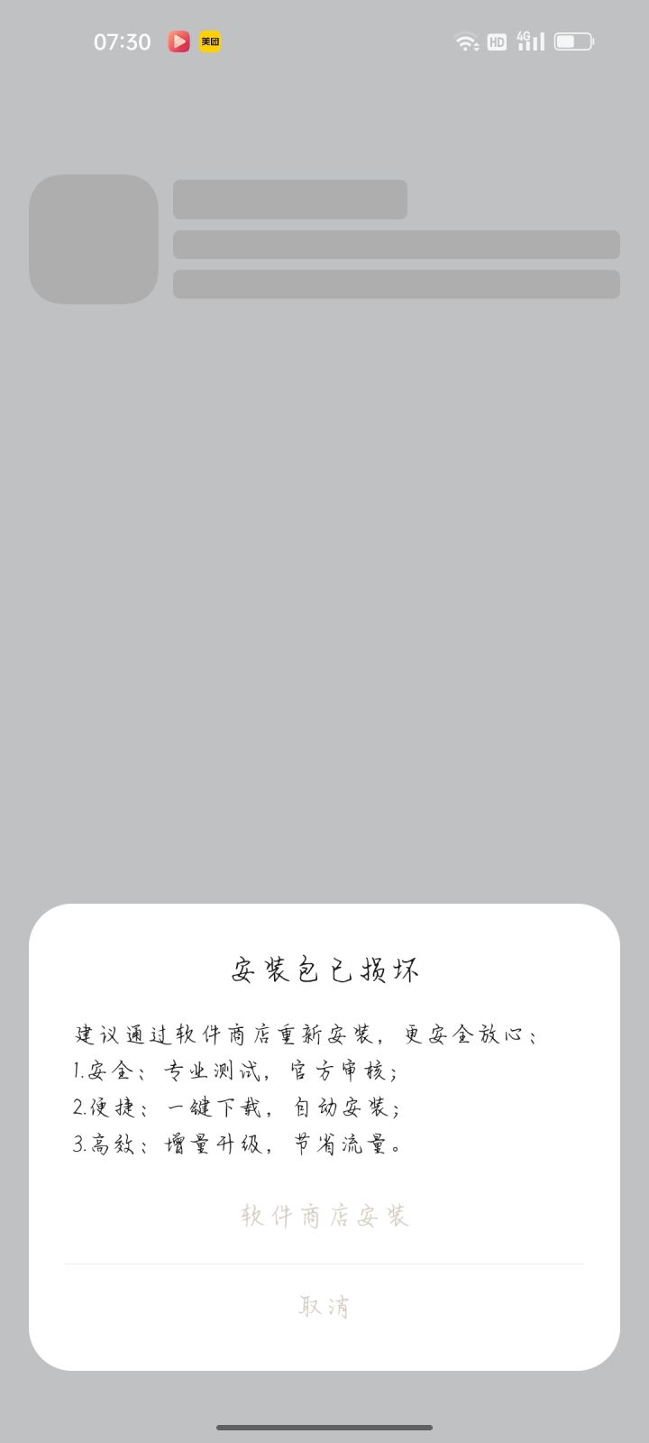 一直显示安装包损坏