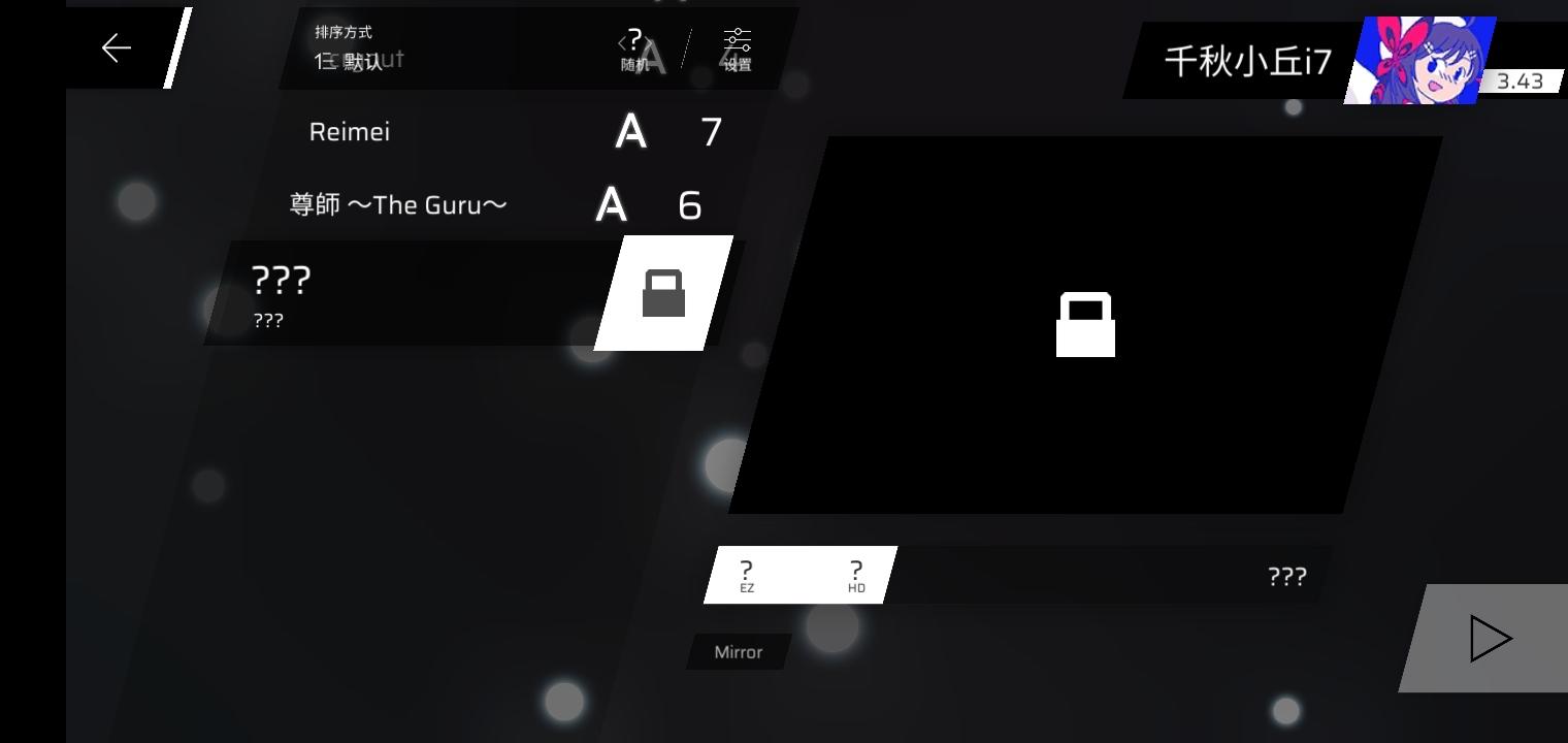 我按照指南是开了第七章,然后我就全给打过了,都是A以上然后该怎么开啊,有大佬说还有一首隐藏的是要打第七章那个钟到a级中途会有时钟然后打第七章第一首要全连然后就会跳转到过去的章节的第一首打就行,第七章我看第一首就是钟啊,打的时候中途也有两个黄键组成的钟是这个么?也全连了然后他就没反应所以是我哪错了么?