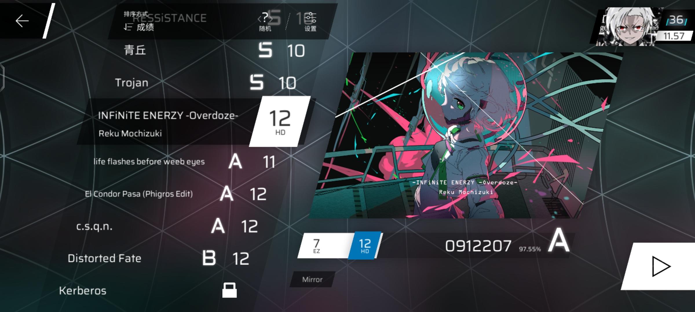 纯萌新,入坑一个月,没音游功底,rks12.94,请问这个成绩虚高吗😰